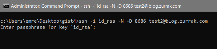 since we assigned /bin/false twice in server, connection with shell is not possible. so we're just going to tunnel with -D and -N flags. it won't output something, but the connection is made.